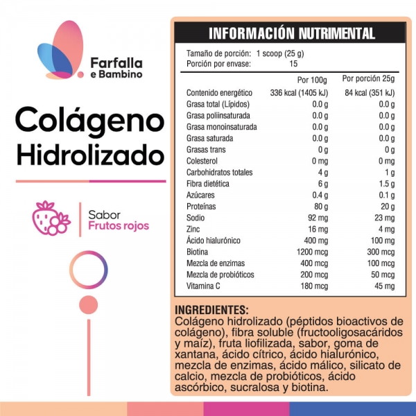 Este Colágeno Hidrolizado es ideal para las personas que buscan mejorar su bienestar integral y mantener una piel radiante y saludable. Formulado con la más alta calidad científica, su fórmula fortalece la estructura de la piel, las uñas y el cabello y promueve una apariencia revitalizada desde adentro. Diseñado para integrarse en la rutina diaria, apoya un envejecimiento saludable y una belleza natural duradera, alineándose con la filosofía holística de Farfalla, que prioriza la salud y el cuidado integral de cada paciente.